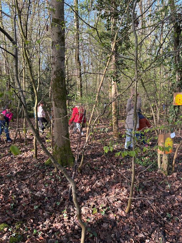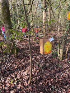 Nachdem nun alles fleißig gebastelt wurde, stand der Höhepunkt dieser aufregenden Zeit an: die alljährliche Ostereiersuche, die die meisten Klassen bei frühlingshaftem Sonnenschein im nahegelegenen Waldstück starteten. Dort entdeckten die Kinder ihre eigens gestalteten Tütchen in versteckten Winkeln, hoch oben in Baumwipfeln oder gut getarnt im feuchten Laub. Zur Freude aller waren die Tüten gut gefüllt mit vielen Leckereien. Den Abschluss dieses aufregenden Ausflugs bildete das gemeinsame Freiluftspiel mit der Patenklasse.